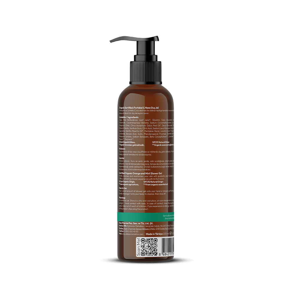 Summary Info: Enriched with prebiotics and skin-friendly plant extracts, this organic shower gel offers a refreshing cleansing experience with orange and peppermint essential oils.