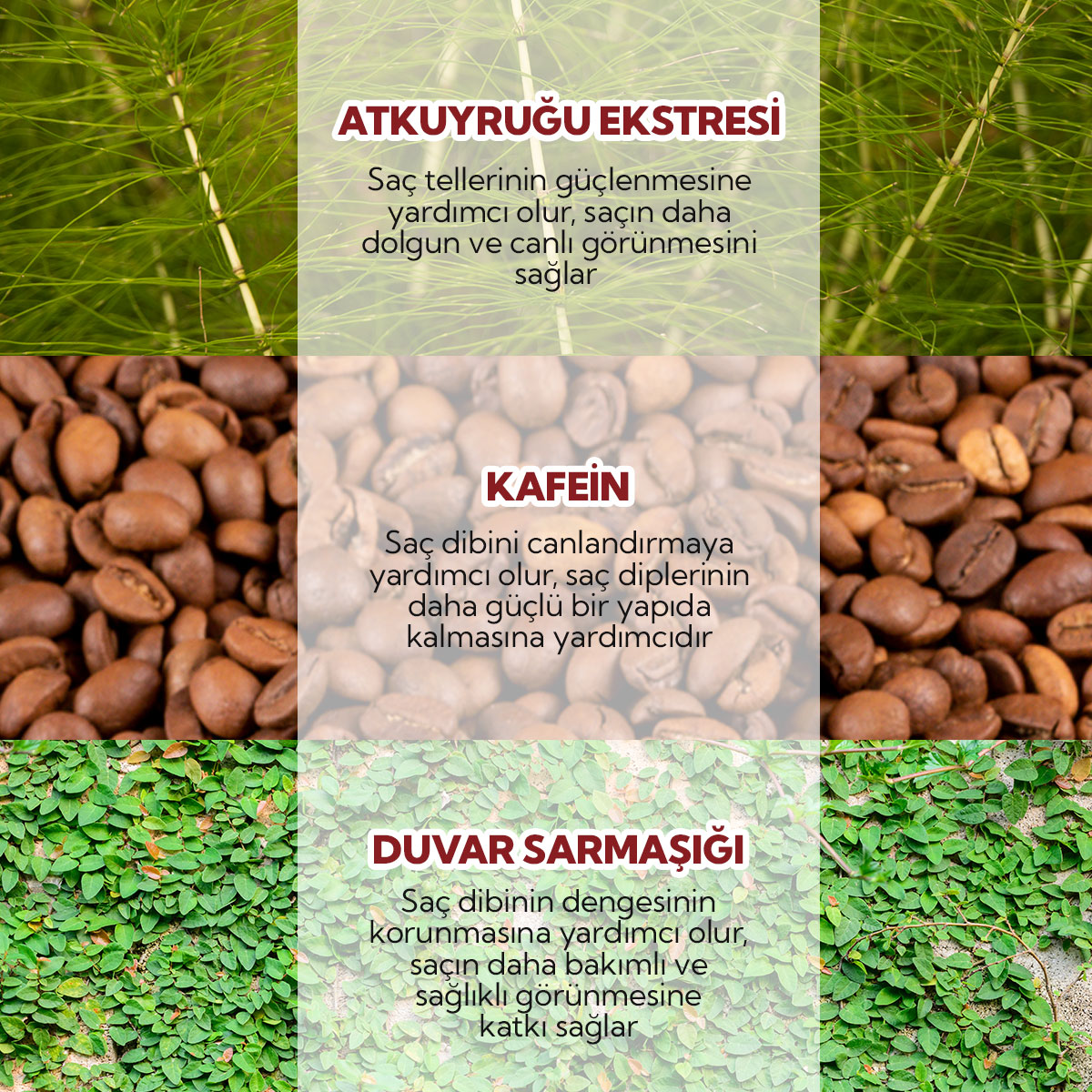 - Organik Sertifikalı Dökülme Karşıtı Prebiyotik Şampuan, atkuyruğu, kafein, duvar sarmaşığı, papatya, ısırgan ve aloe vera ile zenginleştirilmiş, prebiyotiklerle desteklenmiştir.